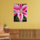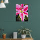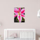 com design original de uma pintura aquosa de Sacha Grossel, de flor líbia rosa-quente, brilhante e colorida, com folhagem verde-escura. Este design floral apanhador de olhos está próximo, macro estilo para amantes de arte botânica e amantes de flores tropicais em todos os lugares.