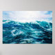 Poster pintura a óleo mostrando ondas no oceano ou no mar