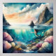Poster Pintura aquosa de Brunette Mermaid 1:1