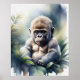 Pintura em Aquarela Bonita de um Gorila Bebê. A proporção largura/altura é 5:4. Ele foi projetado para ser impresso como 5"×4", 10"x8", 20"×16", 30"x24"