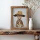 Traga um toque de charme rústico e capricho para a sua decoração com esta encantadora ilustração de um bezerro usando um chapéu de palha divertido adornado com uma pequena flor amarela. Esta obra de arte cativante captura a inocência e a natureza brincalhona do jovem bezerro, tornando-a uma adição perfeita para qualquer berçário, quarto em estilo fazenda, ou como um presente atencioso para amantes de animais. As texturas detalhadas e tons quentes criam uma atmosfera aconchegante e convidativa, tornando esta peça uma adição maravilhosa à sua coleção de arte. Celebre a beleza da vida na fazenda com esta encantadora gravura de bezerro.