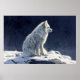 Uma linda raposa ártica branca sentada em uma terra maravilhosa de neve, uma cena serena capturada em uma pintura a óleo em um poster pitoresco.