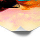 Vibrantes espirais de cor dominam a composição, com derrames energéticos de amarelo, azul e vermelho tecendo sobre fundo rosa e bege macio. O arranjo da abstrato transmite uma sensação de movimento e caos, evocando uma energia viva e dinâmica.