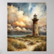 Traga a beleza e a força da costa para a sua casa com este poster impressionante estilo aquarela de 16"x20". Apresentando um farol meteorizado alto contra céus dramáticos e rolando dunas ao largo, este trabalho de arte capta tanto a tranquilidade quanto a potência do oceano. Perfeito para a decoração costeira, as paredes das casas de praia, ou qualquer pessoa que encontre inspiração em temas náuticos, esta poster adiciona um eterno, um toque atmosférico a qualquer sala.