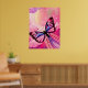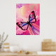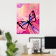 Poster pintura de borboleta voa para o sol da tarde rosa-