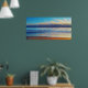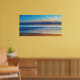 Linha costeira linear horizontal com nuvens, ondas e areia. Esta pintura fotográfica tem uma aparência que fica entre uma fotografia e uma pintura aquosa.