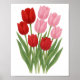 Poster Pintura de Tulipas Vermelhas e Rosadas Arte Floral
