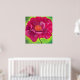 Esta é uma pintura acrílica de uma flor grande rosa-papoila no centro de fundo verde vibrante, gradiente a amarelo-claro e ligeiramente brilhante em direção à parte central. As cores são muito vibrantes e a maneira como o fundo gradiente desaparece dos cantos escuros para a parte central mais clara, moldando uma aura amarelada brilhante em torno da flor em si que faz a cor rosa quente se destacar ainda mais. Esta é uma digitalização do meu trabalho de arte original feita no Serene Inanna Studio.