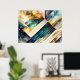 Poster Pintura geométrica com Abstrato de Aquarela Dourad