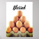 Esta poster apresenta ovos empilhados como uma pirâmide numa caixa de ovos sobre fundo branco. O texto preto diz "abençoado". Personalizar este item ou comprar conforme projetado. imagem de estoque www.freepik.com
