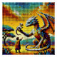 Pixel art of a fearless dragon trainer, standing proudly with their mighty dragon. Retro gaming vibes meet fantasy adventure