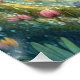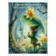 A ilustração com aquarelas brancas de um pixie bonito em uma capa de chuva verde segurando um guarda-chuva em uma floresta tropical. Uma borboleta delicada flutua por perto, procurando abrigo debaixo do guarda-chuva com o pixie. Cercado por narcisos florescentes, a cena da floresta encantadora captura o charme da primavera e das criaturas mágicas pelos martinspíxeis, com o ditado "se você gosta que a flor a escolha, se você ama a água da flor"