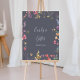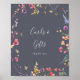 Esta placa clássica azul de cartões e presentes com flores silvestres é perfeita para um casamento rústico ou chá de noiva. O design apresenta flores silvestres amarelas, roxas e brancas com folhagem em um fundo de aquarela rosa e verde.