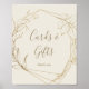 Este letreiro de cartões e presentes geométricos de flores douradas é perfeito para um casamento elegante ou chá de noiva. O design moderno boho apresenta um arranjo caprichoso de flores desenhadas à mão com folha de ouro falso, folhas e elementos botânicos em um fundo creme. A linha de texto na parte inferior do letreiro pode ser personalizada com a data, os nomes da noiva e do noivo, ou uma mensagem curta como "Obrigado". Este letreiro pode ser usado para um casamento ou qualquer evento ou festa.