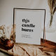 Esta placa comemorativa moderna preta esta vela arde é perfeita para um casamento simples. O design minimalista preto e branco apresenta uma fonte retrô, mas contemporânea, com um toque rústico boêmio único. Perfeito para qualquer estação. Deixe minimalista, como está, ou adicione seus próprios gráficos e obras de arte.