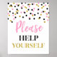 Placa de autoatendimento para chá de bebê, chá de noiva, festa de aniversário ou casamento em um padrão de confetes rosa, preto e dourado.