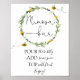 Placa de barra de Mimosa com uma coroa de aquarela de folhagens e flores amarelas com abelhas zumbindo e as palavras barra de Mimosa em um script de caligrafia divertido.