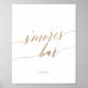 Esta placa de barra de s'mores com caligrafia dourada elegante é perfeita para um casamento simples. O design neutro apresenta um pôster minimalista decorado com tipografia romântica e caprichosa em folha de ouro falsa.