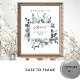 Sinal de boas-vindas elegante com a capacidade de adicionar qualquer evento, e exuberante buquê floral envolvendo sua informação. 8" x 10" é apenas um exemplo, você pode escolher entre tamanhos maiores e menores. Folhas e flores em tons de azul empoeirado, azul-marinho, branco, cinza, sage e caramelo. Seu nome em caligrafia moderna graciosa. Fácil de enquadrar ou alternativamente colar/agrapar em MDF resistente e barato. Parte de nossa coleção de casamento e eventos "Montanhas Azuis Rústicas".