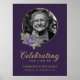 Elegante placa de boas-vindas com foto para funeral em roxo e dourado, apresentando uma foto adornada com rosas roxas e respirações de bebê.