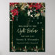 Sinal de Boas-vindas para a Noite Anterior / Jantar de Rehearsal com Elegante Folhagem de Inverno. Composição de Natal de Poinsettia, folhas de azevinho verdes e bagas vermelhas, pinha e grinalda de luz sobre um fundo verde escuro.