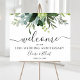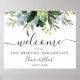 Este letreiro de boas-vindas para aniversário de casamento apresenta eucalipto e folhas verdes pintados em aquarela. Para personalização avançada deste design, clique no BOTÃO FERRAMENTA DE DESIGN AZUL. Itens combinando também estão disponíveis.
