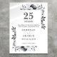 Com um design floral prateado em aquarela elegante, este chique design botânico de bodas de prata de 25 anos pode ser personalizado com as informações do seu aniversário especial em texto prateado moderno. Desenhado por Thisisnotme©