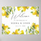 Placa de boas-vindas com flor de limão em aquarela para o seu casamento com tema de frutas cítricas. A cor do fundo pode ser personalizada clicando no link personalizar ainda mais.