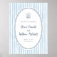Um sinal de boas-vindas caprichoso para combinar com nossa coleção de casamento Whimsical Retro Blue Stripes. Este design apresenta uma moldura desenhada à mão em azul-marinho contra um fundo listrado azul claro e uma ilustração rabiscada de um anel de diamante em uma caixa de anel de concha. Os detalhes seguem com os nomes do casal em letras cursivas charmosas. Ideal para temas de casamento de verão, italiano, praia, iate e litoral. Esta é uma versão de pôster do design. Há uma versão em placa de espuma disponível na coleção. Visualize a coleção vinculada nesta página para itens correspondentes. Sinta-se à vontade para me enviar uma mensagem com qualquer dúvida, ficarei feliz em ajudar!