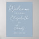 Esta placa de boas-vindas de casamento em script minimalista elegante azul empoeirado pode ser personalizada com suas informações em tipografia chic. Desenhada por Thisisnotme©