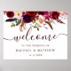Placa de Boas-Vindas de Casamento em Estilo Boêmio com ilustração de peônias e rosas em tons de borgonha, vermelho e rosa com sotaque de penas. É perfeito para casamentos de outono e inverno. Itens combinados também estão disponíveis.