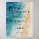 Este elegante sinal de boas-vindas de casamento na praia com oceano azul aquarela pode ser personalizado com suas informações em tipografia moderna. Projetado por Thisisnotme©