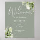 Poster Placa de Boas-Vindas de Casamento Verde Folhagem F