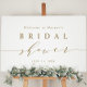 Placa de boas-vindas de chá de panela de noiva simples com escrita dourada.