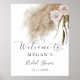 Placa de boas-vindas de chuveiro de noiva moderna com ilustração de aquarela de grama das pampas com flores rosa. Perfeita para a sua festa de verão.