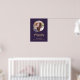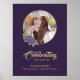 Elegante placa de boas-vindas com foto de funeral/memorial em roxo e dourado, apresentando uma moldura de foto dourada adornada com rosas em aquarela roxa e flores de respiro de bebê.