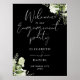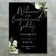 Esta elegante placa de boas-vindas de noivado floral botânico preto e branco pode ser personalizada com suas informações em tipografia sofisticada. Criado por Thisisnotme©