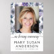 Este belo pôster pode ser personalizado com uma fotografia de seu ente querido, bem como seu nome, e pode ser exibido como uma placa de boas-vindas para a Celebração da Vida ou serviço fúnebre, ou na mesa do livro de visitas.