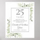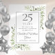 Com delicada vegetação de jardim campestre em aquarela macia, este design botânico chique de 25º aniversário de casamento pode ser personalizado com suas informações especiais de aniversário em texto prateado elegante. Criado por Thisisnotme©