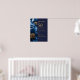 Esta elegante placa de boas-vindas de aniversário de casamento de 50 anos em azul naval e floral dourado pode ser personalizada com suas informações em tipografia moderna. Desenhada por Thisisnotme©