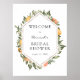 Dê as boas-vindas aos convidados para o seu chá de noiva com este belo cartaz, apresentando uma moldura dourada rodeada por clementinas, laranjas e folhagens. Adicione o nome da convidada de honra, data do chá e texto de boas-vindas personalizado usando os campos fornecidos.