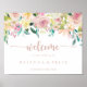 Este sinal de boas-vindas ao casamento floral de primavera de ouro rosa é perfeito para um casamento rústico. A design apresenta uma riqueza de peões coloridos e folhagem verde, lindamente amontoada em buquês charmosos, inspirando beleza natural. Faça esta poster com o nome da noiva e do noivo, e a data do casamento.