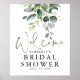 Placa de Boas-Vindas para Chá de Noiva ou Chá de Bebê com Folhagem Elegante