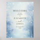 Esta placa de boas-vindas para casamento na floresta de inverno encantado pode ser personalizada com suas informações em tipografia sofisticada. Desenhada por Thisisnotme