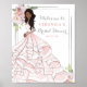 A placa de boas-vindas para chá de noiva apresenta a noiva com vestido de noiva com brilho, glamour e faíscas. Múltiplos estilos de cabelo e tons de pele para escolher!