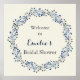 Placa de boas-vindas para chá de noiva floral em marfim e azul-marinho