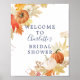 Dê as boas-vindas aos seus convidados com nosso belo cartaz de chá de noiva com folhas de outono e abóboras.