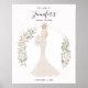 Dê boas-vindas aos convidados do chá de noiva com uma placa com sua semelhança. Personalize o cabelo, vestido e tom de pele da noiva. A cor do fundo também pode ser alterada para combinar com as cores do seu casamento. Entre em contato se precisar de mais personalização do que é oferecido.
