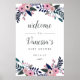 Boas-vindas aos seus convidados para o chá de noiva ou baby shower com o nosso pôster Pink Meadow, apresentando delicadas flores roxas e rosa claro e folhagens botânicas verdes, com "boas-vindas ao chá de noiva de [nome]" e a data do evento em uma mistura elegante de tipografias clássicas serif e caligrafia manuscrita.
