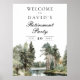 Esta elegante placa de boas-vindas para festa de aposentadoria na floresta do lago em aquarela rústica pode ser personalizada com suas informações em tipografia moderna. Desenhada por Thisisnotme©